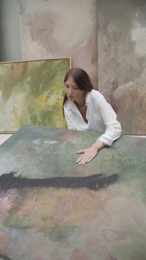 Jenna is a contemporary abstract artist raised and based in Bali, where nature is both her studio and her greatest source of inspiration. Having grown up immersed in the island's elemental landscapes and spiritual rhythms, her work is shaped by a deep connection to the natural world and the patterns that quietly govern it. She works with mixed media often creating her own materials from organic derivatives such as seeds, natural inks, clay, sand, volcanic ash, tea, and leaf tints allowing the earth itself to become part of each composition.